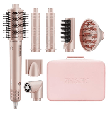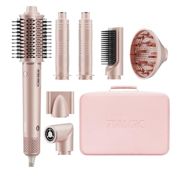 7MAGIC 7 in 1 Hair Styler & Hair Dryer Brush, 110,000 RPM High-Speed Blow Dryer with Negative Ions for Frizz-Free Styling Fast Drying Curling Volumizing Straightening, Hot Air Styler with Travel Case