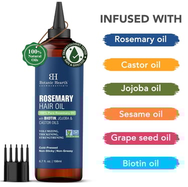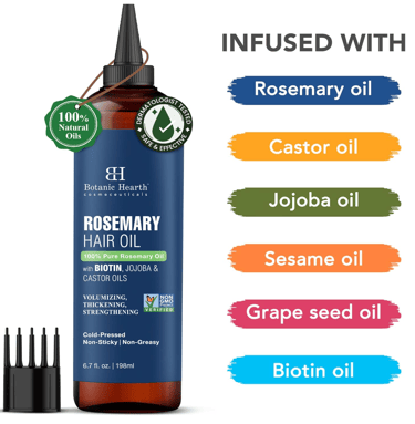 Botanic Hearth 100% Pure Rosemary Oil For Hair Growth (6.7 fl oz) Infused With Biotin, Jojoba & Castor Oil | Hair strengthening Treatment | Nourishing & Volumizing | Non GMO Verified